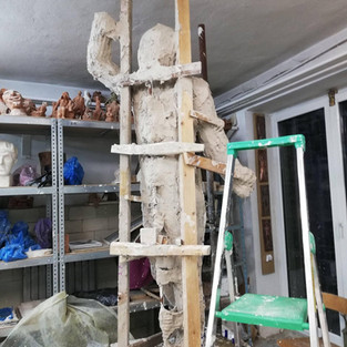 When your sculpture is big, new problems may appear. Your sculpture can break under its own weight. To prevent this, make a construction. If you want to fire it, make metal construction, if not, you can make your construction of anything else, like wood for instance. The important thing is that the construction will support the weight of the clay, if it's really thin, it will work like a knife instead of construction. That's why you can cover your construction with other materials that will increase the surface of the support.